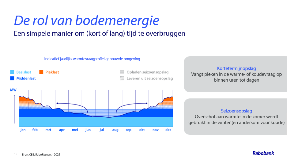 Volgens RaboResearch heeft bodemenergie unieke eigenschappen die het systeem versterken: